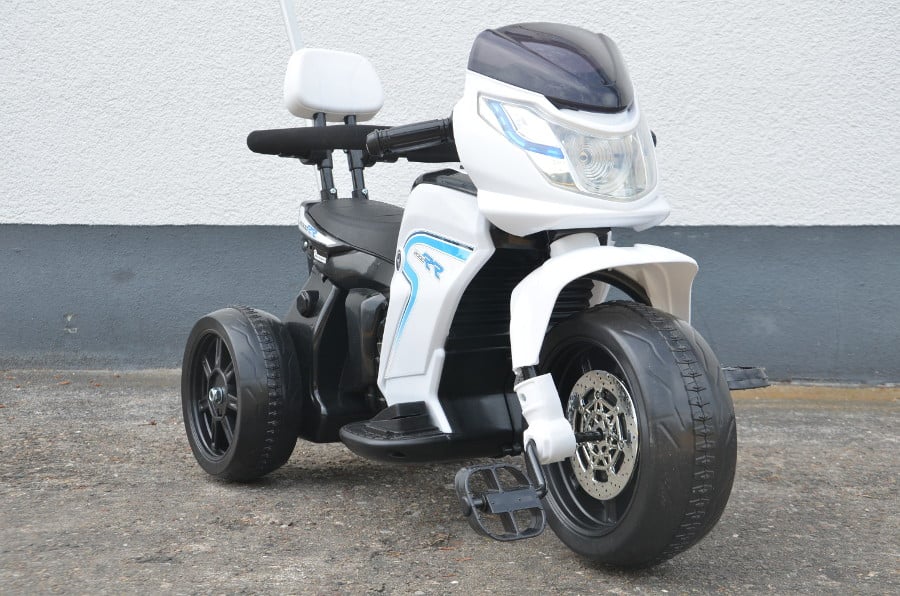 Elektro Kinder Motorrad „108B“ – Dreirad mit Schiebe Stange und Pedalen