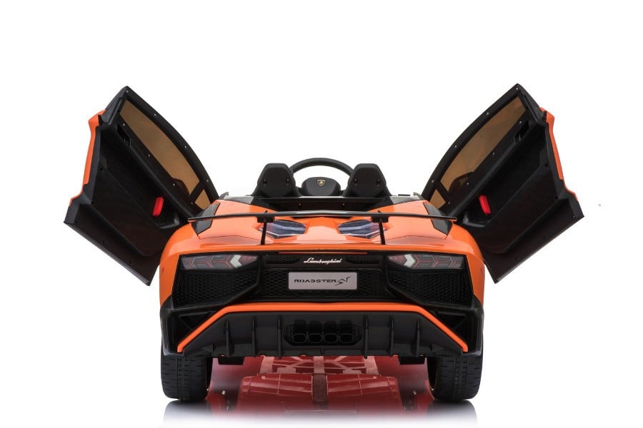 Wahlweise kann Ihr Kind selbst mit Lenkrad bzw. Gaspedal und Sie können mit der 4 Wege 2,4Ghz – Fernsteuerung das Fahrzeug kontrollieren. Es ist ein MP3 Anschluss eingebaut und Sound kann reguliert werden. Dank 2 x 12V Elektro Motoren hat er genug Kraft um Kinder mit bis zu 40 kg tragen zu können. Es sind Scheinwerfer und Rücklichter eingebaut. Es verfügt auch über hydraulische Lambo-Türen.